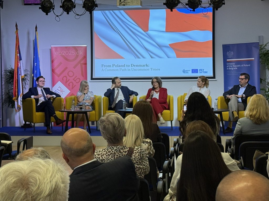 Ambasadorka Danske u Srbiji Pernil Daler Kardel izjavila je novinarima u Evropskoj kući da njena zemlja preuzima predsedavanje u nepredvidivo vreme, suočena sa izazovima bezbednosti, ali da je proširenje izuzetno važno za Dansku i za snaženje EU, uključujući Ukrajinu i Zapadni Balkan.