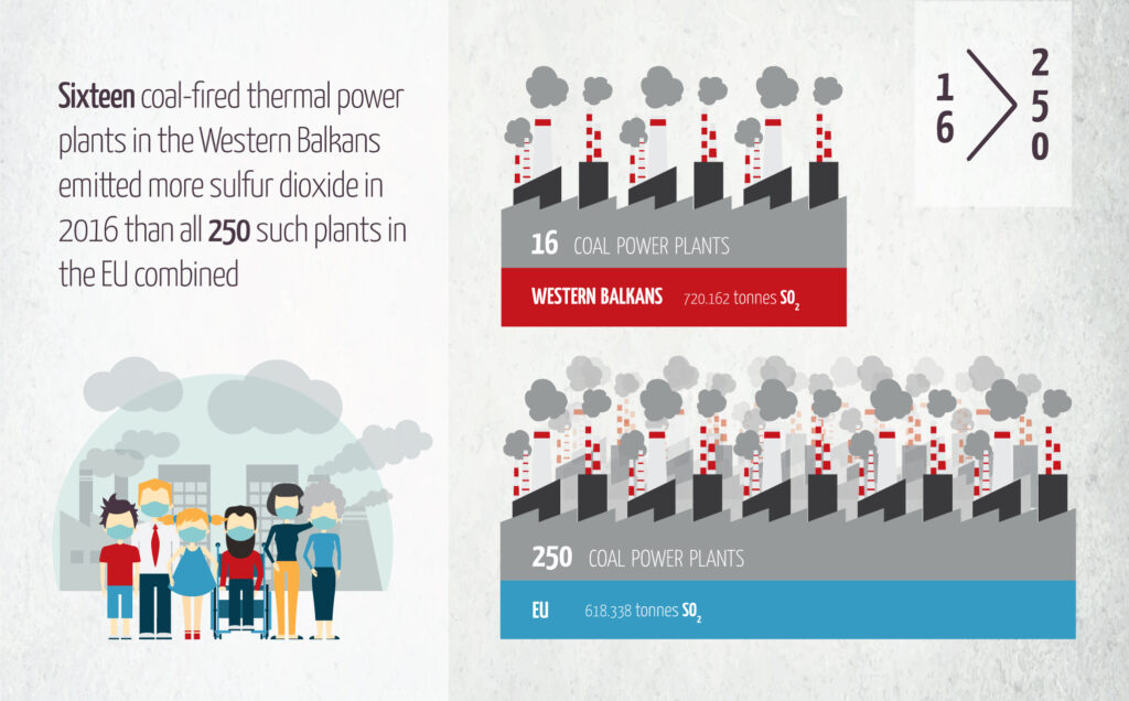 EFB podseća da se u studiji koju su objavili HEAL, Sandbag, CAN Europe, CEE Bankwatch i Europe Beyond Coal, navodi da je 2016. godine šesnaest termoelektrana na ugalj na Zapadnom Balkanu, koliko ih i dalje ima, emitovalo više sumpor-dioksida (SO2) nego svih 250 koje su radile u Evropskoj uniji, a da Srbija i Bosna i Hercegovina i dalje ostaju pri planovima za nove termoelektrane, dok se one u EU masovno gase.