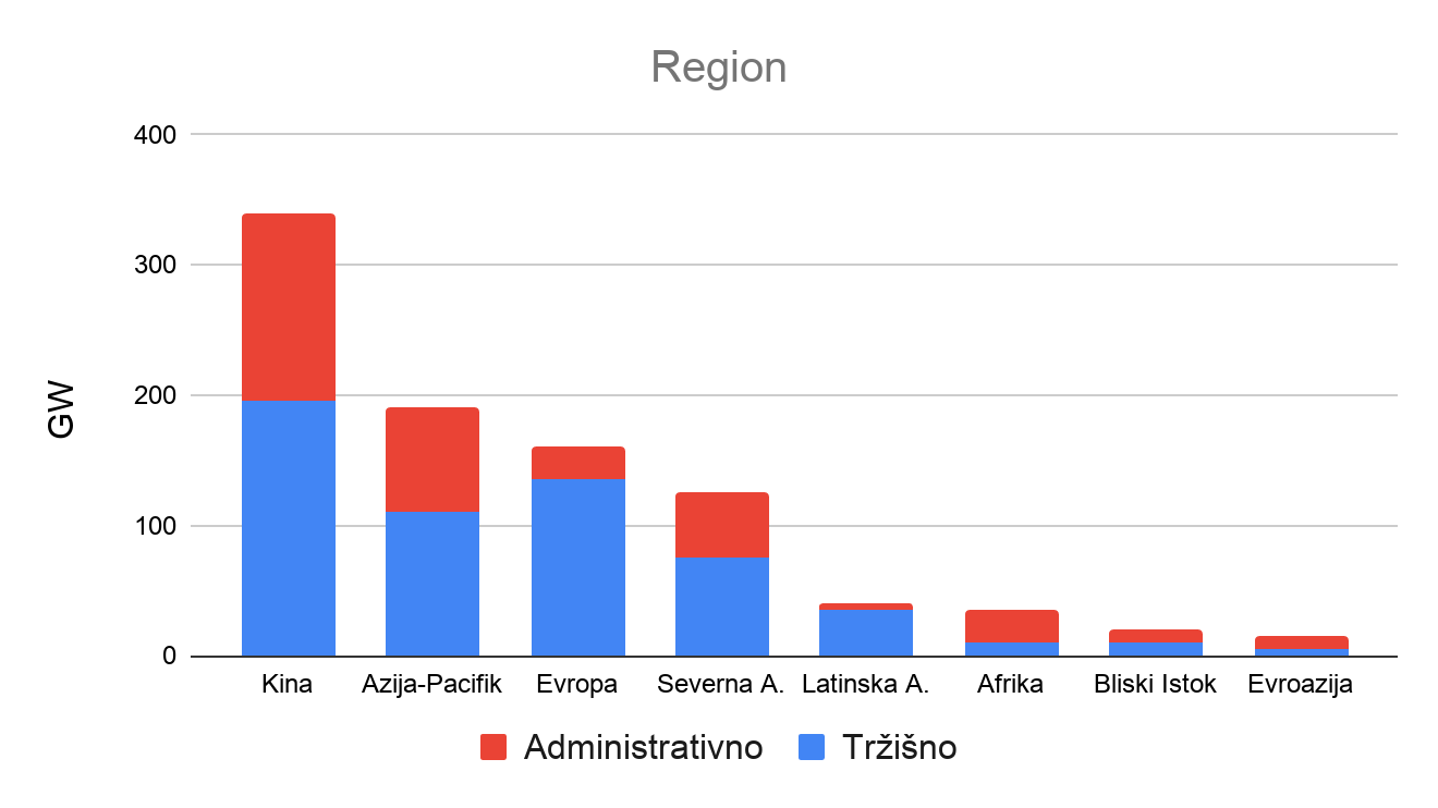 Struktura finansiranja OIE prema regionu i izvoru energije data je na Grafikonu 1.