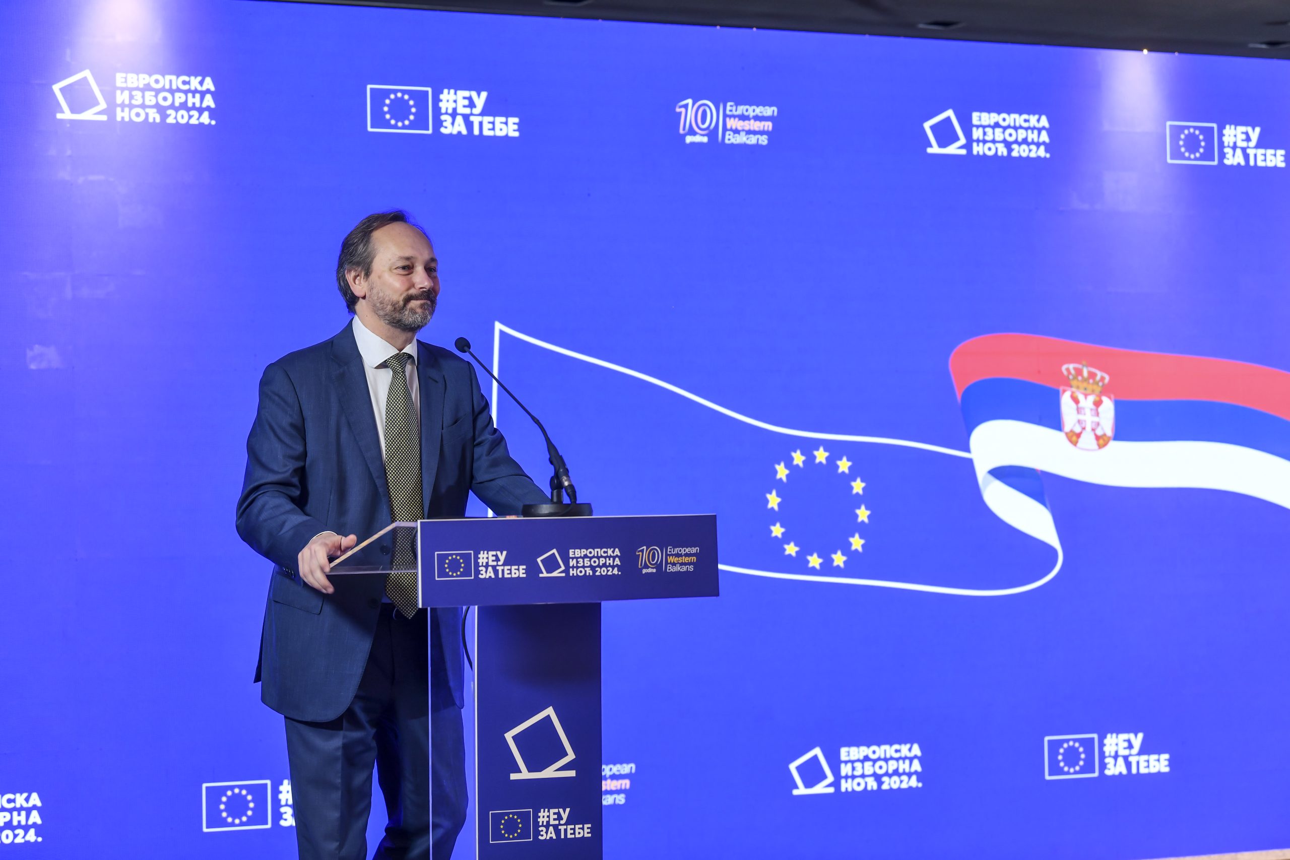 Gosti “Evropske izborne noći 2024”, koja je održana u nedelju uveče u Beogradu, imali su priliku da uživo iz Brisela prate prve rezultate izbora za Evropski parlament, da neformalno glasaju za neku od grupacija iz EP, te da učestvuju u kvizu na EU teme. Ovaj događaj organizovan je povodom završetka četvorodnevnog glasanja u 27 država članica. Kao i pre pet godina, mesto okupljanja bio je hotel Metropol Palace, a organizatori Delegacija EU u Srbiji i portal European Western Balkans.