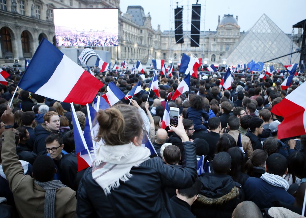 Makronove pristalice počele su da se okupljaju u dvorištu Luvra u Parizu gde planiraju da proslave njegovu pobedu, javljaju francuski mediji.