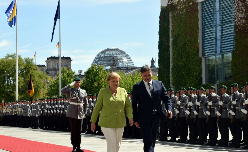 SARAJEVO – Nemačka kancelarka Angela Merkel srela se juče sa predsedavajućim Veća ministara Bosne i Hercegovine, Denisom Zvizdićem. Tom prilikom, naglasila je evropsku perpsektivu Bosne i Hercegovine i Zapadnog Balkana, kao i nemačku podršku na tom putu, dodajući da njena zemlja takođe podržava potencijalno bosansko pristupanje NATO-u.
