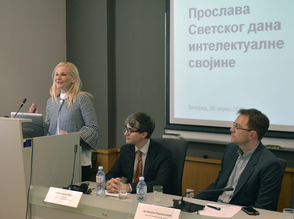 Ističe da je Srbiji potrebna dosledna i efikasna zaštita intelektualne svojine, navodeći da strani investitori traže da im se garantuje zaštita njihovih patenata, žigova i geografskih oznaka porekla.
