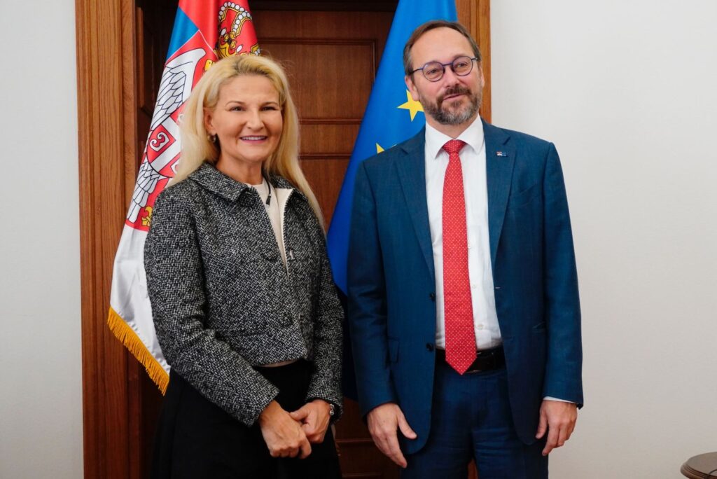BEOGRAD – Ministarka za evropske integracije Tanja Miščević razgovarala je danas sa šefom Delegacije Evropske unije u Beogradu Emanueleom Žiofreom o predstojećim aktivnostima u procesu pristupanja Srbije EU i upoznala ga sa planovima na ubrzanju reformi, kako bi bila ostvarena korist za građane Srbije, saopštilo je Ministarstvo, prenosi FoNet.