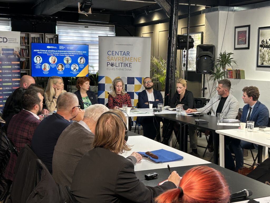 BEOGRAD – Nalazi izveštaja Evropske komisije o Srbiji nisu zadovoljavajući za zemlju koja ovoliko dugo pregovara o punopravnom članstvo, rečeno je tokom Javnog čitanja izveštaja EK o Srbiji, koje su organizovali Fondacija Centar za demokratiju i Centar savremene politike (CSP). Panelisti su ocenili da je nivo pripremljenosti Srbije za članstvo, kao jedan od važnijih kriterijuma, već godinama isti i da to pokazuje kolika je politička volja vlasti za reformskim procesima na putu ka EU.
