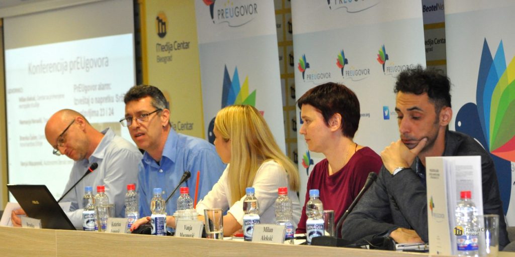 Koaliciju PrEUgovor čine Akcija protiv trgovine ljudima, Autonomni ženski centar, Beogradski centar za bezbednosnu politiku, Centar za primenjene evropske studije, Centar za istraživačko novinarstvo, Grupa 484 i Transparentnost Srbija. Sonja Stojanović Gajić iz Beogradskog centra za bezbednosnu politiku je ocenila da se reforme sprovode parcijalno i da idu u pogrešnom smeru u poglavlju 24 o bezbednosti, slobodi i pravdi.