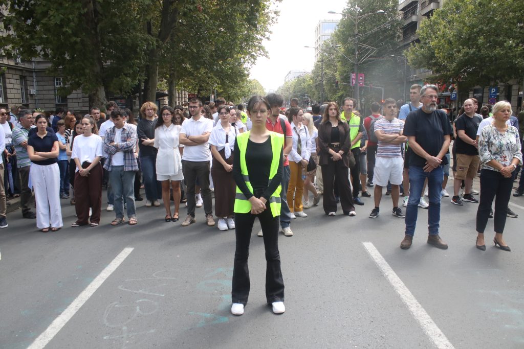 Odavanje počasti stradalima u Novom Sadu na protestu u Beogradu, 18. avgust 2025; Foto: Zoran Mrđa / FoNet
