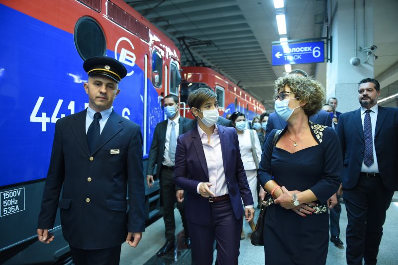 Predsednica Vlade Srbije Ana Brnabić i ministar građevinarstva, saobraćaja i infrastrukture Tomislav Momirović danas su sa gostima iz Evropske komisije u železničkoj stanici Beograd Centar obišli međunarodni voz „Connecting Europe Express”.