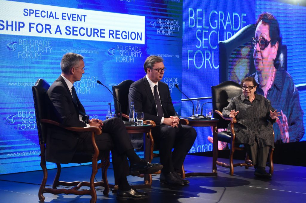 BEOGRAD – NATO je počeo da se prilagođava hibridnim prijetnjama, ali ne može rešiti postojeća pitanja između nacija u regionu – jer to moraju učiniti sami narodi, glavne su poruke posebnog događaja uoči Beogradskog bezbednosnog foruma, koji je predstavljao razgovor generalnog sekretara NATO Jensa Stoltenberga i predsednika Srbije Aleksandra Vučića.