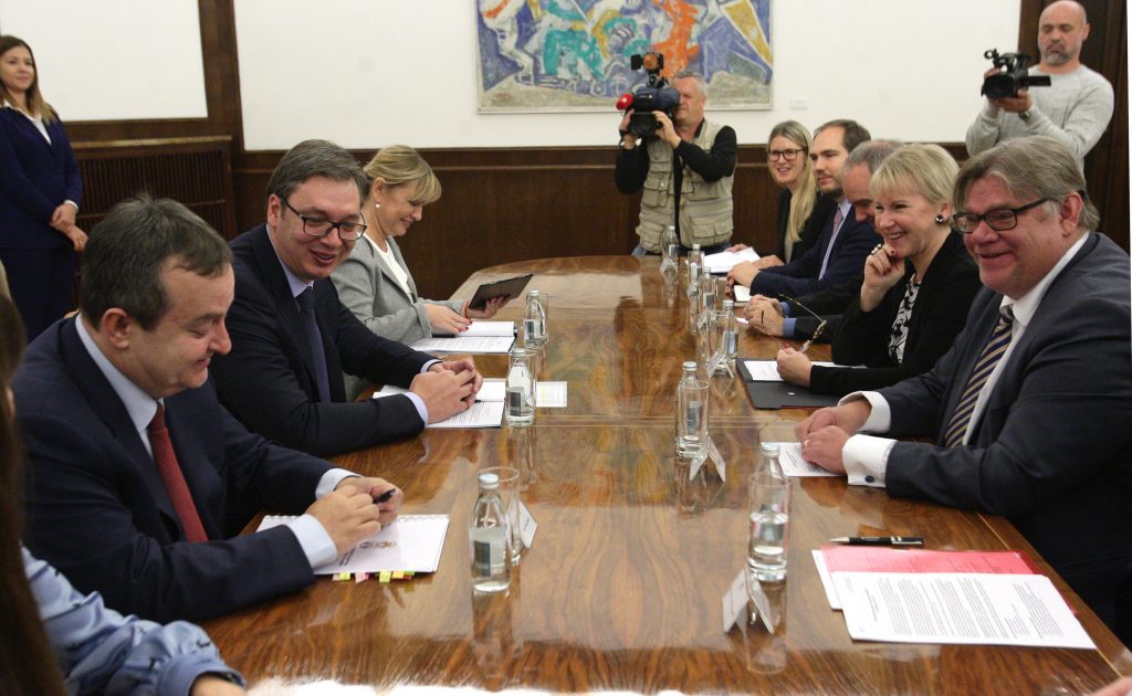 BEOGRAD – Srbija ostvaruje dobre ekonomske rezultate i pokazuje neophodnu stabilnost, istakli su danas na sastanku sa predsednikom Srbije Aleksandrom Vučićem ministri spoljnih poslova Švedske i Finske Margot Valstrom i Timo Soini, izrazivši nadu da će doći do povećanja švedskih i finskih investicija u našoj zemlji.