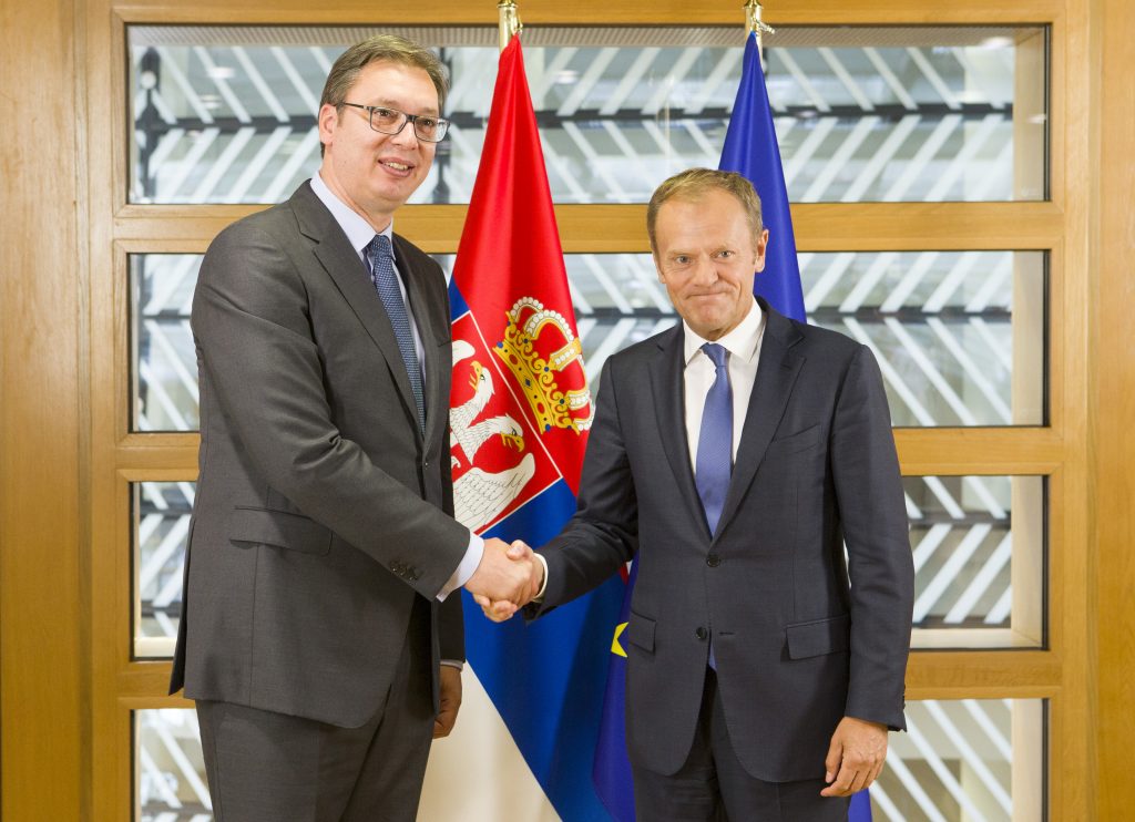 „Postoji perspektiva, i to je dobro, ali Srbija želi da dobije značajniju motivaciju“, rekao je Vučić posle razgovora sa predsednikom Evropskog saveta i poručio da je sada vreme za razgovor sa liderima Nemačke i Francuske, Angelom Merkel i Emanuelom Makronom.