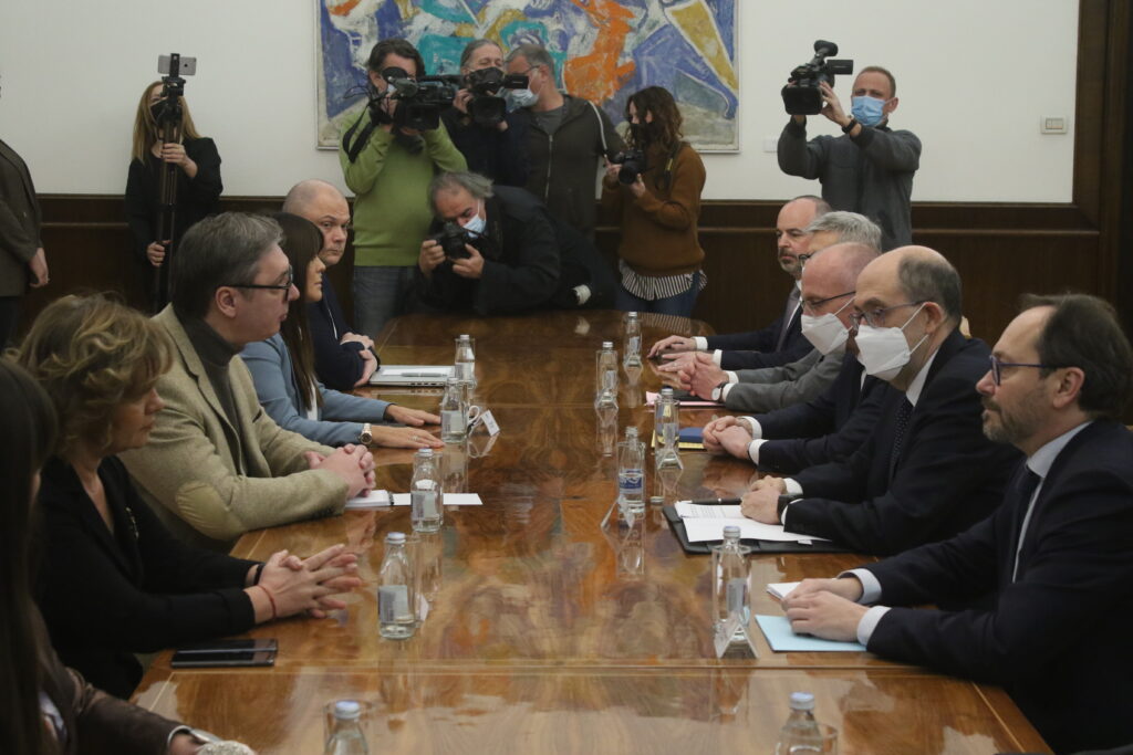 BEOGRAD –  Predsednik Srbije Aleksandar Vučić razgovarao je danas sa ambasadorima zemalja Kvinte (Velika Britanija, Francuska, Italija, Nemačka i SAD) i šefom Delegacije Evropske unije u Srbiji o brojnim pitanjima, navodi se u saopštenju kabineta predsednika posle sastanka. Sve informacije o stavovima koje su strane iznele, biće objavljene u narednih 36 sati, ističe se u saopštenju.
